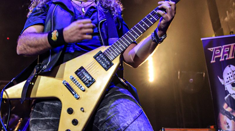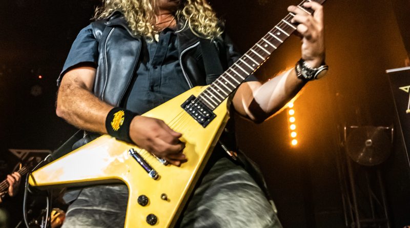 La noche comenzó con alto voltaje tras la aparición sobre las tablas del quinteto madrileño INVADERS, una formación compuesta por Sergio García al bajo, Adrián García a la guitarra, Sergio Chamoso a la voz, Carlos Sánchez a la guitarra y Adrián Rica a la batería, quienes están poniendo en el mapa del Heavy Metal su localidad natal Alcorcón llevando cada vez más a todos los rincones de Madrid y también fuera de la capital su personal estilo musical centrado en elaboradas composiciones propias con marcadas y elegantes influencias del movimiento conocido como La Nueva Ola De Heavy Metal Británico, ola surgida a finales de la década de los setenta en clara referencia a grupos como SAXON, IRON MAIDEN o DEF LEPPARD de los que el quinteto ha bebido, personalizando por otro lado esta dorada corriente y llevándola a su terreno acompañándola además con una estética de la que en su día pudimos presumir gran parte de los allí presentes basada en cuero, «tachuelas», «mallas» y muñequeras muy del estilo con el que en su día los propios PANZER se y nos identificaron, manteniendo así esta jovencísima formación una llama inagotable y cogiendo un relevo generacional imprescindible para que nuestro «rollo» siga vivo, algo que esa noche consiguieron sobradamente a través de un Set List de seis temas que interpretaron durante aproximadamente cuarenta y cinco minutos íntegramente en inglés a excepción de una de sus canciones icónicas, «Hijos Del Metal», cuyo apoteósico final hizo estallar al respetable en más que merecidos aplausos tras corearla prácticamente al completo junto al grupo.