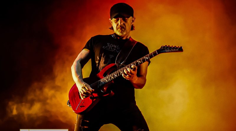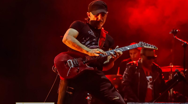 «La Noche De Que Te Hablé» de LEÑO, «Resistiré» de BARÓN ROJO, «Vamos Muy Bien» de OBÚS o «No Hay Tregua» de BARRICADA, subieron el tono de la velada arrancando palmas, manos en alto e incluso headbanging del respetable que demostró buena memoria cantando este popurrí «cañero» el cual nos acompañó a todos en una época de cambios donde la música fue sin duda la protagonista y que estos seis jinetes se encargaron de rememorar regalando riffs demoledores, solos ágiles y punteos rápidos a cargo de los dos guitarristas que durante muchos momentos de la actuación se miraron y defendieron sus instrumentos cara a cara, enfrentados en un sano combate de notas y arpegios para el disfrute de todos los que mirábamos casi en éxtasis tal despliegue de calidad presente en todos y cada uno de ellos, ya que los teclados estuvieron también muy presentes especialmente en temas como «Concierto Para Ellos» de BARÓN ROJO, «La Paz Es Verde» de ASFALTO o «Mis Amigos Están Vivos» de TOPO, himnos que frenaron la adrenalina más salvaje que se había desplegado en los anteriores y con la luna y las estrellas como testigos transportaron al público hacia ese pasado utópico, acercando a la gente a los héroes que BARÓN ROJO rememoraron en su día como lo fueron Bon Scott, Janis, Lennon, Allman, Hendrix, Bolan, Bonhan, Brian y Moon.