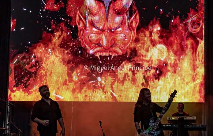 La noche fue avanzando y a darle magia contribuyó continuamente el cantante, quien entre tema y tema lanzaba speechs al público introduciéndole de lleno en el show, unas alusiones que eran recogidos por el respetable con aplausos y muestras de calor hacia la banda que cada vez más motivada y metida en el directo se marcaron «Noche De Halloween», «La Mujer Dormida», «Cambia El Mundo» o «¡Vive!» de un tirón y demostraron así que estábamos ante un grupo compacto, compenetrado, con guiños continuos entre instrumentos e instrumentistas que encontraron un poderoso punto de apoyo en los teclados, el bajo y la voz como elementos rigurosos de esta romería, los cuales fomentaron el resto de melodías arrancadas a placer por los demás elitistas artilugios musicales desembocando en una exquisita compenetración de guitarra rítmica y solista que tuvieron claro su papel, tirando la una a la otra como si de hermanas gemelas se tratase.