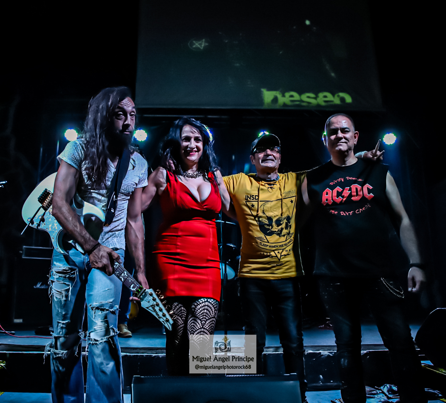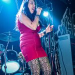 Con Reguero y Luis subidos en la tarima de Manuel, el cual contó en su batería con una impactante performance de calaveras, ÚTIMO DESEO se descolgó con «Abandonado», tema en el que no se deja nada al azar con interesantes cambios de tiempo perfectamente entrelazados junto a una guitarra muy empastada con el bajo que aportó un marcado juego de muñeca, todo ello para llevar la batuta de esta canción con aires de libertad y una de las que mejor permitió el lucimiento de Fernando al mostrarnos éste un punteo talentoso y virguero no exento de melodía pero con matices que se deslizaron por los riffs clásicos de un Hard que aparece en ocasiones puntuales, ya que con la intervención de la vocalista el Rock marca de la casa vuelve siempre a surgir compartiendo primacía con la guitarra, la cual en esta canción se mostró en auténtico estado de gracia y con ganas de desenvolverse por sí misma arrancando acordes tras los imparables aplausos de los allí presentes que agradecieron cada uno de los temas con palmas, manos en alto y acogiendo con aplausos la canción que da nombre a este disco en el que la banda ha plasmado esfuerzos, ilusiones y su buen hacer siempre con mucha fuerza pero sin perder nunca de vista la melodía, nos referimos a «Es Un Sueño», un poderoso medio tiempo donde el grupo suena como un tiro impregnada la canción de muchísima intensidad a modo de balada pero sin perder un ápice de fuerza y que Pilar remató animando a los allí presentes a no dejar de soñar nunca, para pasar acto seguido a presentar a la banda antes de mostrar de nuevo su versatilidad haciendo un guiño a GUNS con «Word Up» y entrar en «Hoy Quiero Estar Junto A Ti», tema que refleja esa complicidad que forman la melodía de la voz de Muñana y la guitarra de Reguero, de tintes más rebeldes y salvajes con demostración también de esa frescura que caracteriza al cuarteto y que afortunadamente se mantiene, combinándose ahora con un volcado de madurez en los temas nuevos recientemente publicados.