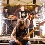 Tras haber disfrutado de este mimetismo de estilos protagonizado por Miguel Ángel y Marcos, llegó de nuevo el turno de que Isaac se subiese al escenario para deleitarnos con su voz y mostrarnos lo que bromeando dijo el propio Leal era un cantante de verdad, un relevo que recogió con fuerza Palón machacándonos los oídos con derroche vocal y amplio registro de agudos en las brutales «Highway To Hell» y una extraordinaria versión muy coreada y aplaudida por la gente del tema de TWISTED SISTER «We’re Not Gonna Take It», en el que durante el estribillo pararon los instrumentos y animaron a que todos los allí presentes cantaran con ellos y dieran palmas manos en alto consiguiendo así que ambas canciones no sólo fueran cantadas por el personal, sino que toda la gente levantase brazos y puños mientras Palón se dejaba la piel en dos temas desenfadados y de metalero estribillo pegadizo que supusieron la «caña» internacional más Heavy de un final que se preveía apoteósico, sobre todo cuando subió Carlos Llorena al escenario sentándose en las escaleras del mismo delante del frontman para interpretar el «Separate Ways», nuevamente un tema de JOURNEY que llegó precedido por unos efectos especiales a cargo de unas bengalas en los laterales de las tablas que aportaron luz, color y muchas ganas de bailar sobre todo también gracias a los punteos que se marcó Miguel Ángel, a la agilidad que cogieron los teclados de Marcos, a la voz entregada con la que lo gestionó Isaac y a la contundencia con la que sonó el bajo de Llorena, el cual no escatimó en acordes poderosos con cadencia marcada para dar rotundidad a la canción, recorriendo de forma ágil el mástil de su bajo y dando empaque al llegar a las zonas más bajas del mismo dejándolo reposar su mano para centrarse sencillamente en las cuatro cuerdas más pegadas al puente y arrancar un sonido acompasado y sordo que facilitó los coros de sus compañeros, enlazando a la perfección con ellos y aportando cuerpo a una canción de corte melódico pero que admitió vigor a raudales.