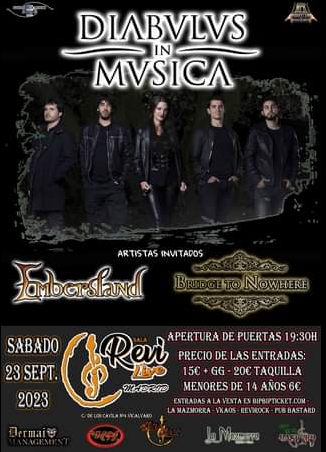 DIABULUS IN MUSICA, EMBERSLAND y BRIDGE TO NOWHERE en Madrid el 23 de septiembre en la Sala Revi Live