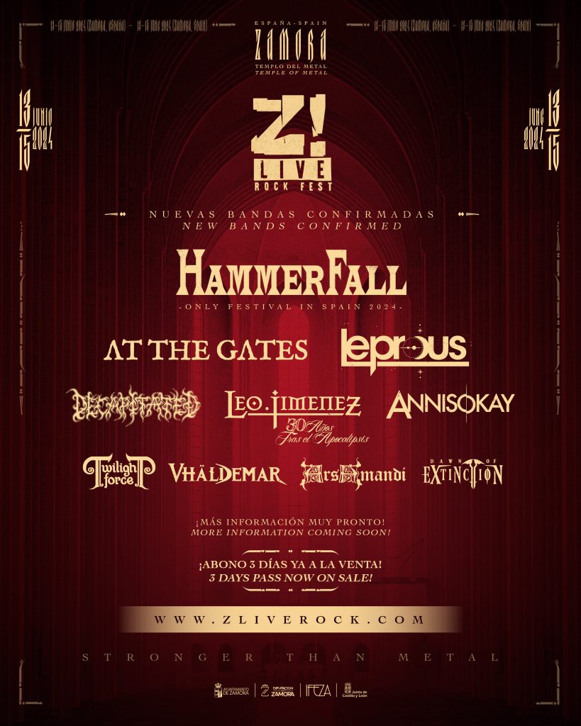 El Festival Z! Live confirma diez nuevas bandas y perfila así un cartel que apunta muy alto al contar también con los suecos HAMMERFALL, uno de los grupos más representativas del Power Metal internacional que actuará en el Z! siendo éste su único Festival en toda España para convertirse en uno de los platos fuertes de la edición 2024 en la que, según aseguran desde la organización, «todavía quedan sorpresas y algunas muy importantes por presentar».