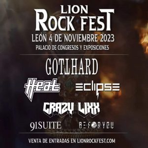 En Artisti-K Producciones somos unos fans de este estilo musical y por ello, hemos querido hacer felices a otros seguidores del mismo convirtiendo por un día nuestra ciudad que es León en el epicentro del Hard Rock gracias al Lion Rock Fest, el cual contará con un cartel repleto de estrellas tanto nacionales como internacionales e iniciándose esta ilusionante andadura el 04 de noviembre de este año con espíritu de pervivencia para estrenarse con seis formaciones de lujo como son GOTTHARD (Suiza), ECLIPSE (Suecia), H.E.A.T (Suecia), CRAZY LIXX (Suecia), 91SUITE (España) y BEFORYOU (España)