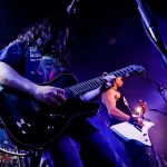 «I Dream That I Can Fly» nos llevó al momento más íntimo de la noche para el cual contó Manu con una acústica adicional apoyada en una peana y el cambio de su propia guitarra eléctrica, mientras explicaba al respetable el loable fin al que se destinan las descargas de este tema al ser los beneficios íntegramente donados a La Federación Española De Parkinson. Para esta canción, el grupo contó sobre el escenario con la colaboración a la voz de Sam Gómez (SONICSPOON) y el tema empezó con acústicas y acordes muy norteamericanos que nos mostraron un cambio de estilo dentro del Heavy Metal por parte de la banda, cambio que derivó hacia un Hard matizado por Gómez con un registro brutal entre agudos y graves a placer perfectamente complementados con y por la voz de Manu, compaginándose ambas en determinados momentos del tema arropadas por la guitarra acústica a cuyo frente se situó el propio Manu y una batería que acarició el ritmo de la canción con generosidad, mientras Rodri redondeó el espectáculo con riffs marca de la casa despidiendo el tema y a Sam Gómez de forma magistral y dando comienzo de igual forma a «Stranger» con un bajo muy volcado y en general alto protagonismo de las percusiones, que mantuvieron un tono alto al juntarse con dos guitarras centradas en esta ocasión en un nuevo juego misterioso rozando el Progresivo que cortaron en el siguiente, mostrando de nuevo esa apertura de estilos dentro de un Metal clásico que hace difícil el encasillamiento.