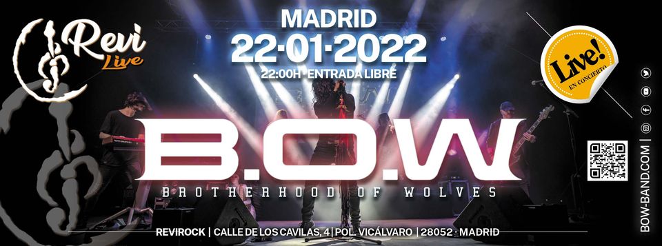 La banda es fantástica, las canciones os van a hacer sentir a gusto, seas o no seguidor del rock. Creemos que es un concierto para todo tipo de público que le guste la buena música. Marco el cantante, es muy buen front man, lo vais a pasar muy bien y es entrada libre en Revirock, una sala impresionante para ofrecer un buen show. Os invitamos a B.O.W. Gracias por vuestro interés.