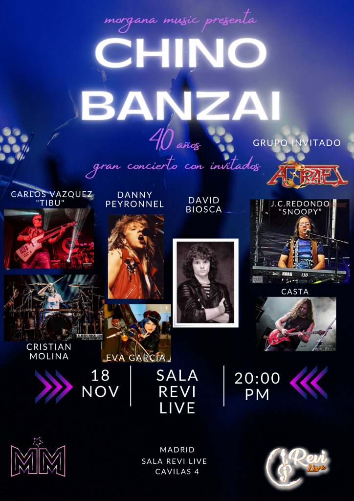 Hoy conversamos con Valentín del Moral, más conocido como Chino, el motivo no es otro que el cuarenta aniversario de uno de los discos imprescindibles en la historia del Heavy metal de nuestro país el primer LP homónimo de BANZAI, y el concierto conmemorativo que Valentín dará con su banda CHINO BANZAI en la madrileña Sala Revi Live este próximo sábado 18 de noviembre, acompañado por AZRAEL que estarán presentando, su último trabajo.
