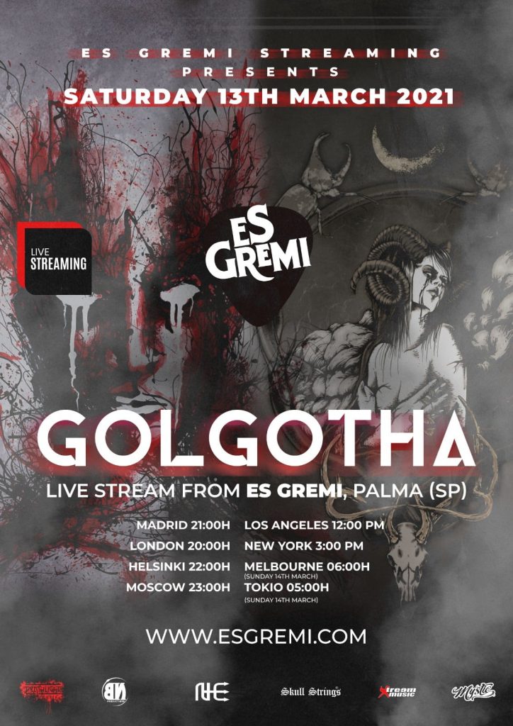 Este sábado 13 de marzo se lía en vuestras pantallas. La legendaria banda de doom GOLGOTHA realizará una doble presentación de sus recientes obras Erasing The Past y el EP Remembering The Past/Writing The Future en la sala Es Gremi de Palma. 11 cámaras en full HD retransmitirán este espectacular live stream desde uno de los mejores recintos del estado, donde ya han tocado grupos como Cannibal Corpse, Doro, Tankard, Sodom, Kreator o Sepultura.