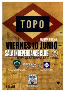 La legendaria a la vez que modesta formación TOPO, pionera del Rock en la capital y creadora del término Rock Urbano, estará el próximo viernes 10 de junio en la madrileña Sala Independance presentando su último trabajo titulado Duros Y Dulces Años.