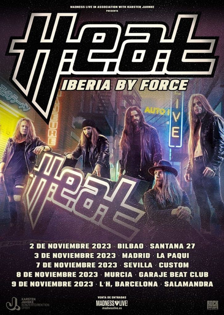 - Viernes 03 de noviembre de 2023 en Sala La Paqui -Antigua Sala But– (Madrid) Anticipada 30 € a través del siguiente enlace Comprar entradas para H.E.A.T + Crazy Lixx (Madrid) (madnesslive.es) y taquilla 35 €