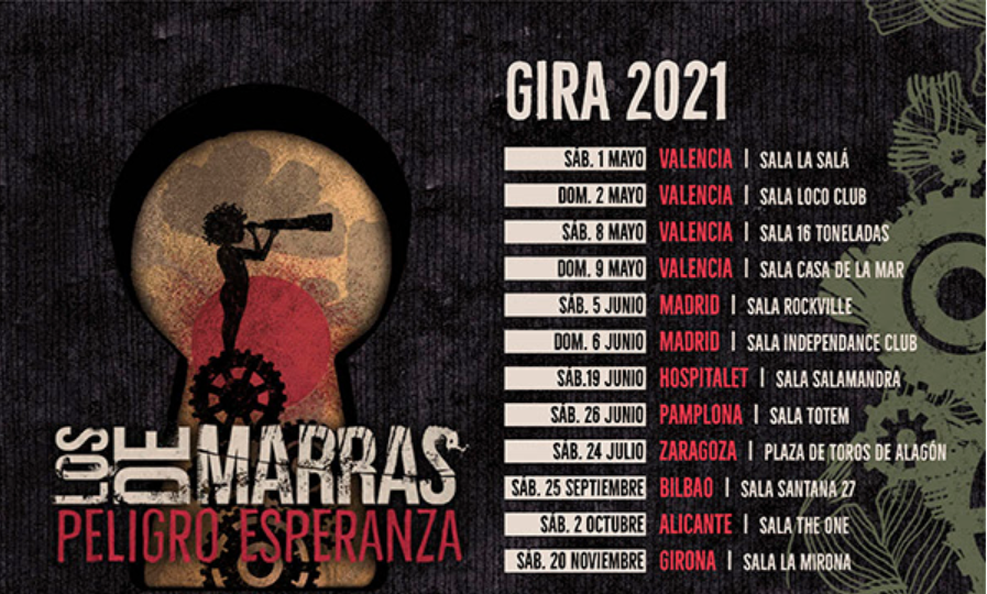 LOS DE MARRAS salen de su Valencia natal para ofrecer una gira de conciertos con la que recorrerán gran parte de la geografía nacional presentando su último trabajo Peligro Esperanza, un álbum cargado de Rock desgranado a través de once temas con el que ya han conseguido agotar algunas de las fechas previstas: