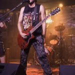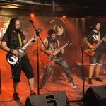 XUMATRA fue la encargada de abrir el concierto en lo que era su regreso a los escenarios tras gusto un año de parón. Curiosamente su último concierto fue el 18 de julio del año pasado en esta misma sala. La banda de Arganda derrocho energía a lo largo de todo el concierto, pronto las gabardinas, con las que salieron ataviados empezaron a sobrar y si hubieran sido otras las circunstancias seguramente el público asistente no hubiera parado de moverse, siguiendo el ritmo y los estribillos pegadizos de sus temas al más puro estilo del Heavy clásico. Tuvimos también la ocasión de escuchar algunas de las nuevas canciones que formaran parte del próximo trabajo de la banda como «Trueno de Cartón» o «Hasta que salga el Sol» cuyos aires festivos, probablemente le conviertan en imprescindible en las descargas de la banda. Tampoco falto una acertada versión rockera del «Asturias de Víctor Manuel.