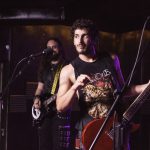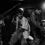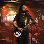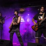 Tras el correspondiente cambio de equipo LYCANTROS se dispusieron a poner el broche final, unos pequeños fallos en la conexión de la guitarra de Sergio y que fueron solucionados en seguida con unas buenas dosis de buen humor, delataron desde el primer momento que la banda no solo tiene una propuesta interesante a nivel musical que mostrar si no que cuenta con la desvergüenza y un pequeño puntito canalla que hacen que un grupo pueda meterse al público en el bolsillo. Rock cañero en el que se funden diferentes estilos que van desde el Heavy al rock más clásico, pasando por el Punk. Como era de esperar no faltaron en su repertorio los tres temas que componen su último trabajo «Réquiem por un Hígado Perdido» Con dos auténticos cañonazos como son «Recuerdos» y «Puto Borracho» o una magnífica versión de «Enjoy the Silence» de Depeche Mode. Tampoco falto algún estreno como «Arwen»»