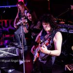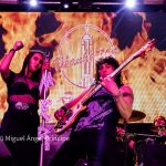 Tras las obligadas «Buenas Noches» y el saludo hecho por Mer al público con el amable agradecimiento a todas y a todos por su presencia, la banda continuó con la misma formación en escena interpretando ahora sí y seguidas, las dos canciones de producción propia «Tu Mundo De Papel» y «No Te Rindas», atribuidos por la propia cantante a su compañero Miguel Ángel Leal, quien hizo los honores a ambos con una interpretación soberbia a las seis cuerdas apoyado por la maravillosa mano de su compañero Yeray subiendo y bajando dedos al pasearlos por el mástil con una rapidez imparable haciendo disfrutar al respetable con dos temas de diferente formato y sonido, lo que hace muy difícil saber el estilo que pueda elegir la MANHATTAN a la hora de seguir desarrollando contenido propio, pues mientras que el primer tema aportó unos toques muy dulcificados por unos teclados que sin duda tuvieron su noche, en el segundo ya apreciamos un tono más duro y Hard con un bajo muy protagonista, un sonido plagado de cambios rítmicos elegantes y una base armónica cohesionada que interpretaron con alta complicidad, siendo dos canciones elaboradas con giros potentes y estribillos pegadizos.