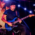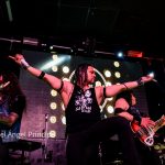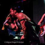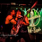 Otra de las sorpresas de la noche llegó con «Alíate», himno donde los haya de los míticos SOBREDOSIS que se encargó de interpretar Leal junto con la presencia en escena de Raúl Santonja, el primer invitado de la noche que acompañó a Miguel Ángel en las seis cuerdas mientras Yeray y Mer se retiraron de la escena dejando las posiciones a estos dos monstruos que literalmente y como dice el propio tema «dispararon Rock» con sus guitarras.
