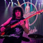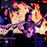 «Maldito Sea Tu Nombre» supuso uno de los momentos más cañeros de la noche. Con tres guitarras sobre el escenario al bajarse Álvaro, Tete se marcó este temazo de ÁNGELES DEL INFIERNO que parece haber hecho suyo al realizar con el mismo una auténtica y destroyer interpretación de una fiereza imparable, descomunal, rabiosa, certera, rompedora y que además gestiona siempre con una incuestionable aptitud vocal acompañada de una actitud personal en la que siempre se muestra cercano y haciendo guiños a sus compañeros a los que involucra, como también ocurrió en «Separate Ways», canción que se gestionó de nuevo con Álvaro sobre la escena y que el frontman aprovechó para ir presentando uno a uno a los miembros de la banda acompañado por un fondo de guitarras entrelazadas entre sí, sin prisa pero sin pausa, mostrando vigor en los punteos e intercalando momentos de subida con momentos de base más armónica según lo pedía el desarrollo de la canción.