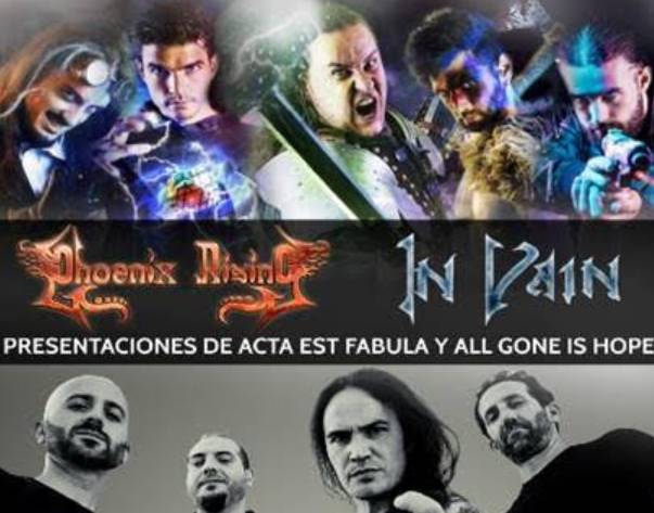 Dos grandes de la escena metalera madrileña como son PHOENIX RISING e IN VAIN, han unido fuerzas para presentar al público sus nuevos lanzamientos discográficos en un concierto único donde los primeros desgranarán su álbum Acta Est Fabula, el tercero de su carrera y que ve la luz tras siete años de publicarse el anterior, trayendo consigo una gran riqueza al tratar un tema tan apasionante como son los viajes en el tiempo y la posibilidad de manipular los diferentes acontecimientos históricos que tienen lugar durante los mismos