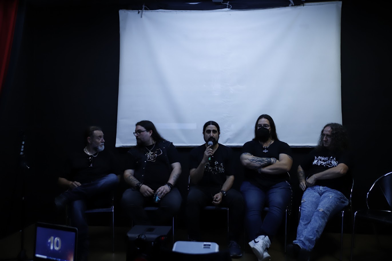 Un compañero de medios hace referencia en este caso al estilo Power Metal que ejecuta el grupo, señalando que tal vez sea un estilo saturado y le interesa conocer qué ofrece NIGHT HEARTH que no ofrezcan en esta línea el resto de grupos europeos, algo a lo que Txüs sigue respondiendo señalando que ellos sencillamente no se complican la vida y ofrecen sencillez en lo que podría ser un «menos es más» y sobre todo les interesa trabajar los conciertos, que es donde ellos creen está en gran parte la clave por no hablar de lo ilusionante que es ver como la gente sale contenta de los mismos.