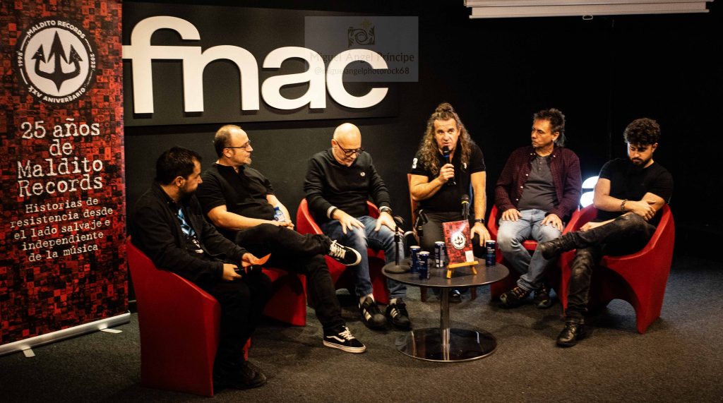 El pasado jueves 23 de noviembre, asistimos a la presentación en la FNAC Callao (Madrid) del libro que recoge los 25 años de existencia del sello discográfico Maldito Records, un evento que estuvo moderado por Juanma Sánchez (El Vuelo Del Fénix) y contó con la asistencia de Niko Del Hierro (SARATOGA), Kosta Vázquez (BOIKOT) y Diego Palacio (CELTIAN) entre otros, además de con la presencia del director del sello Emilio Gerique Daroca.