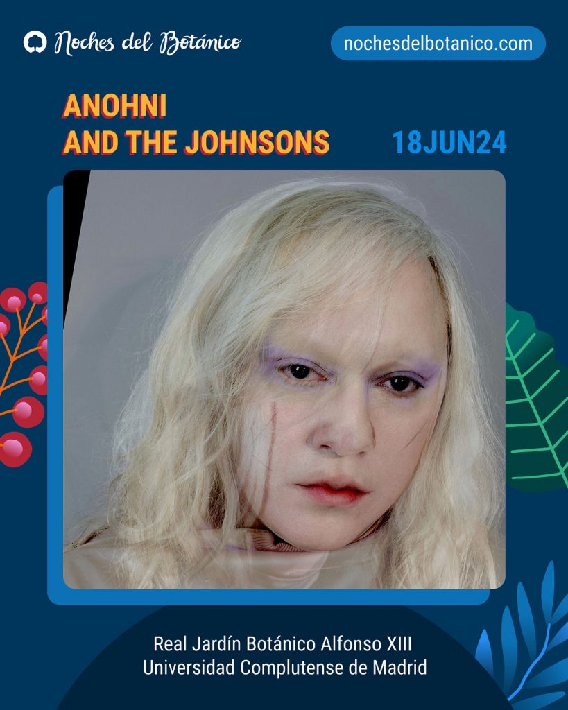 La octava edición del Festival Noches Del Botánico se cierra con la confirmación de la banda ANOHNI AND THE JOHNSONS, un grupo oriundo de Nueva York centrado en una virtuosa miscelánea entre el Indie y la Música Alternativa que liderado por la cantante, pianista y compositora de todas las letras de la formación Anohni Hegarty dejará su impronta en el Real Jardín Botánico Alfonso XIII de la Universidad Complutense De Madrid desgranando las canciones que le han valido al combo la admiración y colaboración con grandes artistas como Dennis Hopper, Kate Bush, Franco Battiato o Laure Anderson quienes han afirmado sobre la vocalista «todas las emociones del planeta se encuentran en su increíble voz».