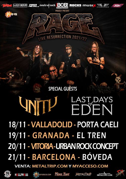 Las fechas del «Live Resurrection Tour 2021» de RAGE son: