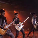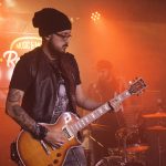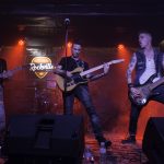 KLANDESTINA CLUB fueron los encargados de abrir la noche con «Limite de lo prohibido» tema que da nombre a su primer álbum de estudio y que se encuentran presentando en esta gira. La banda compuesta por Raúl S-Villain  a la voz, Pascual Martínez y Pedro M. Miras a las guitarras, José Mur al bajo y Carlos Arquero a la batería. Como pude comprobar a lo largo de la noche sería difícil catalogar a la banda dentro de un solo estilo ya que sus temas navegan sin perder una esencia de rock a lo largo de una larga variedad de estilos desde temas que pasan de temas más cercanos al Pop como «Miedo a despertar«, al Country de «Corazón pirómano» que fue aprovechado para presentar a los componentes de la banda, o el Rock and Roll más clásico» Atrapados en Madrid» pasando por temas más cañeros como «Encanto con maldad» o guitarreros «Hijos de Lucifer» Tampoco faltaron las versiones como «Maldito duende» de Héroes del silencio, a los que sobre todo la voz de Raúl me recordó al propio Bumbury más de una vez durante la noche o «No dudaría» de Antonio Flores, tema escogido para el bis final que fue cantando con una sola voz por todos los asistentes. Una banda muy recomendable para pasar una buena noche divertida escuchando Rock and Roll, con unos magníficos músicos y una gran showman a la voz que no dejo de interactuar y animar al publico.
