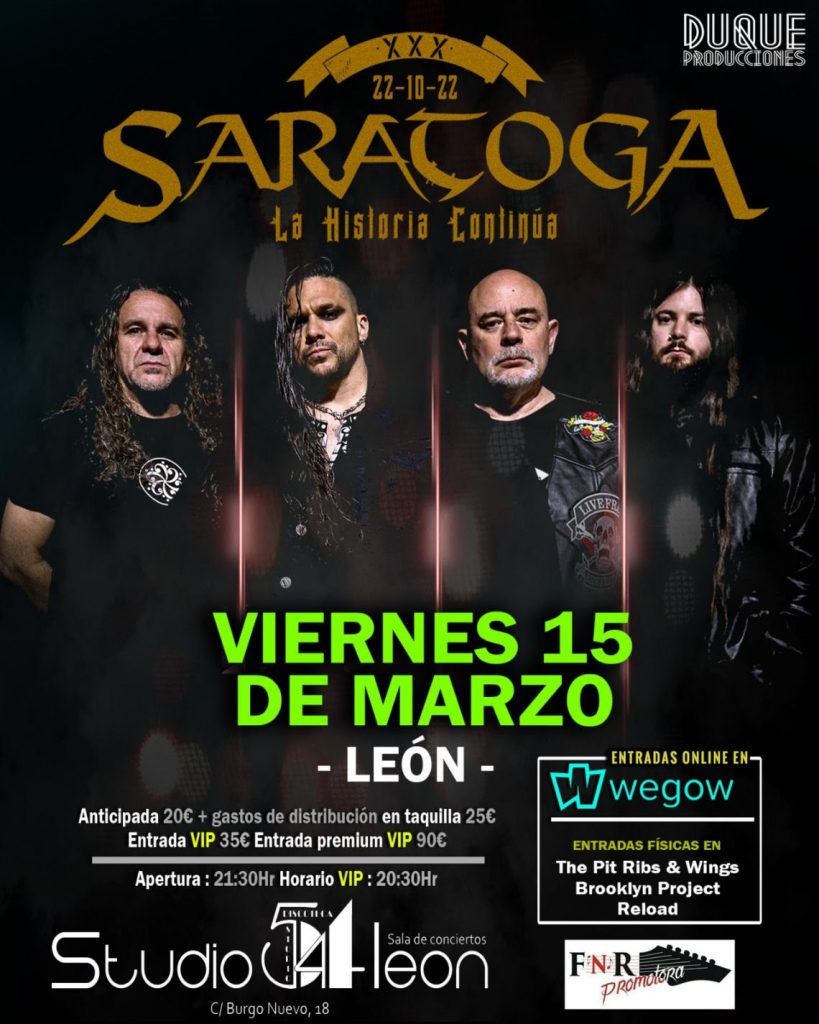 SARATOGA actuará en León el viernes 15 de marzo y en Zaragoza el sábado 16