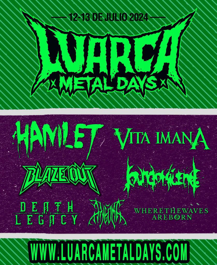 El Luarca Metal Fest iniciará su andadura en el presente año 2024 y más concretamente los días 12 y 13 de julio en la asturiana localidad de Luarca, un municipio costero perteneciente al Concejo De Valdés que acogerá a un selecto elenco de grupos para hacer disfrutar a los asistentes del mejor Heavy Metal gracias a unos reconocidos nombres propios como son HAMLET, VITA IMANA, BLAZE OUT, SOUND OR SILENCE, DEATH & LEGACY, ANEUMA o WHERE THE WAVES ARE BORN que estarán acompañados por las dos formaciones que resulten ganadoras de la «Batalla De Bandas» que el Festival puso en marcha el pasado 19 de febrero y que tendrá su final el sábado 13 de abril en la Sala Estilo de Oviedo con cuatro protagonistas, A DARK REBORN, BUDASAM, HOUR-GLASS, KRITTER y SYNCHRONICAL.