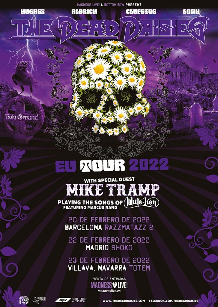 El Rock’n’Roll es un viaje, no un destino. THE DEAD DAISIES continúan su aventura hacia 2022 con nueva música, nuevas giras y nuevos proyectos. Ya son 5 los discos de estudio que atesoran, con la reciente publicación de su descomunal Holy Ground, y su fama ha alcanzado cotas mundiales increíbles gracias al talento combinado de Glenn Hughes (Deep Purple, Trapeze, Iommi, etc), Doug Aldrich (Dio, Whitesnake, etc), Tommy Clufetos (Black Sabbath, Alice Cooper, Ted Nugent, Rob Zombie, etc) y David Lowy casi nada, cuatro grandes del Rock mundial.
