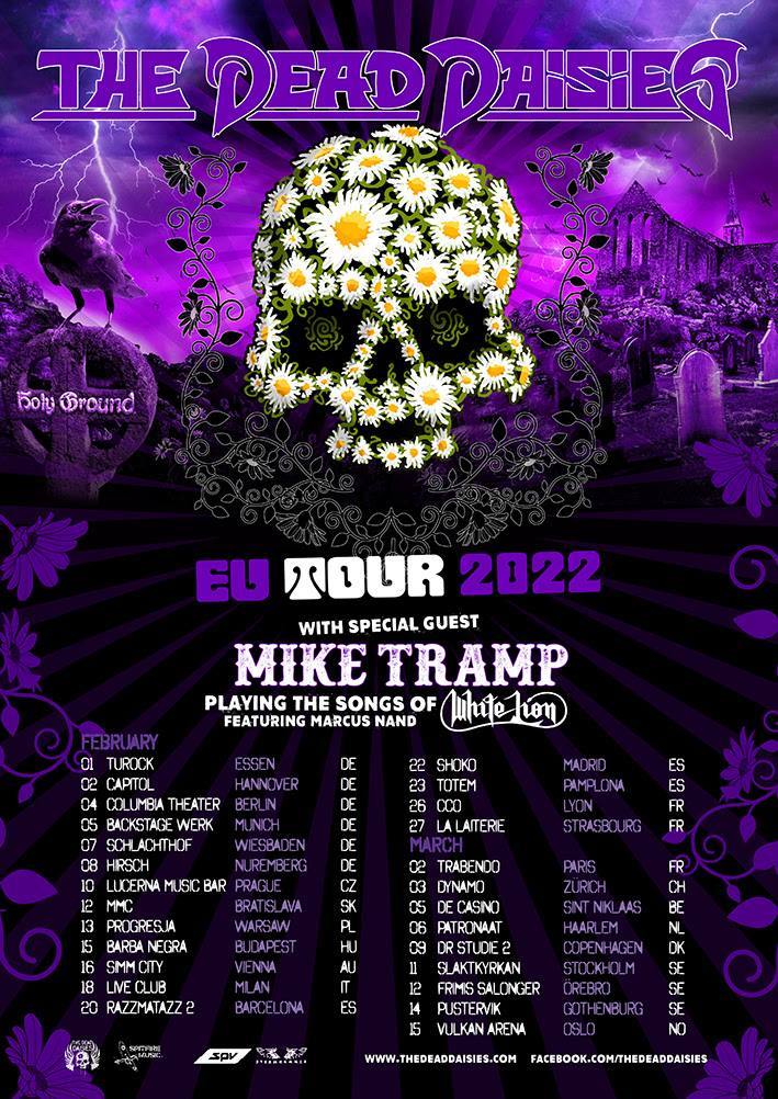 Finalmente se han conseguido reubicar las fechas de THE DEAD DAISIES para febrero de 2022. Serán los días 20, 22 y 23 de febrero en Barcelona, Madrid y Pamplona respectivamente.