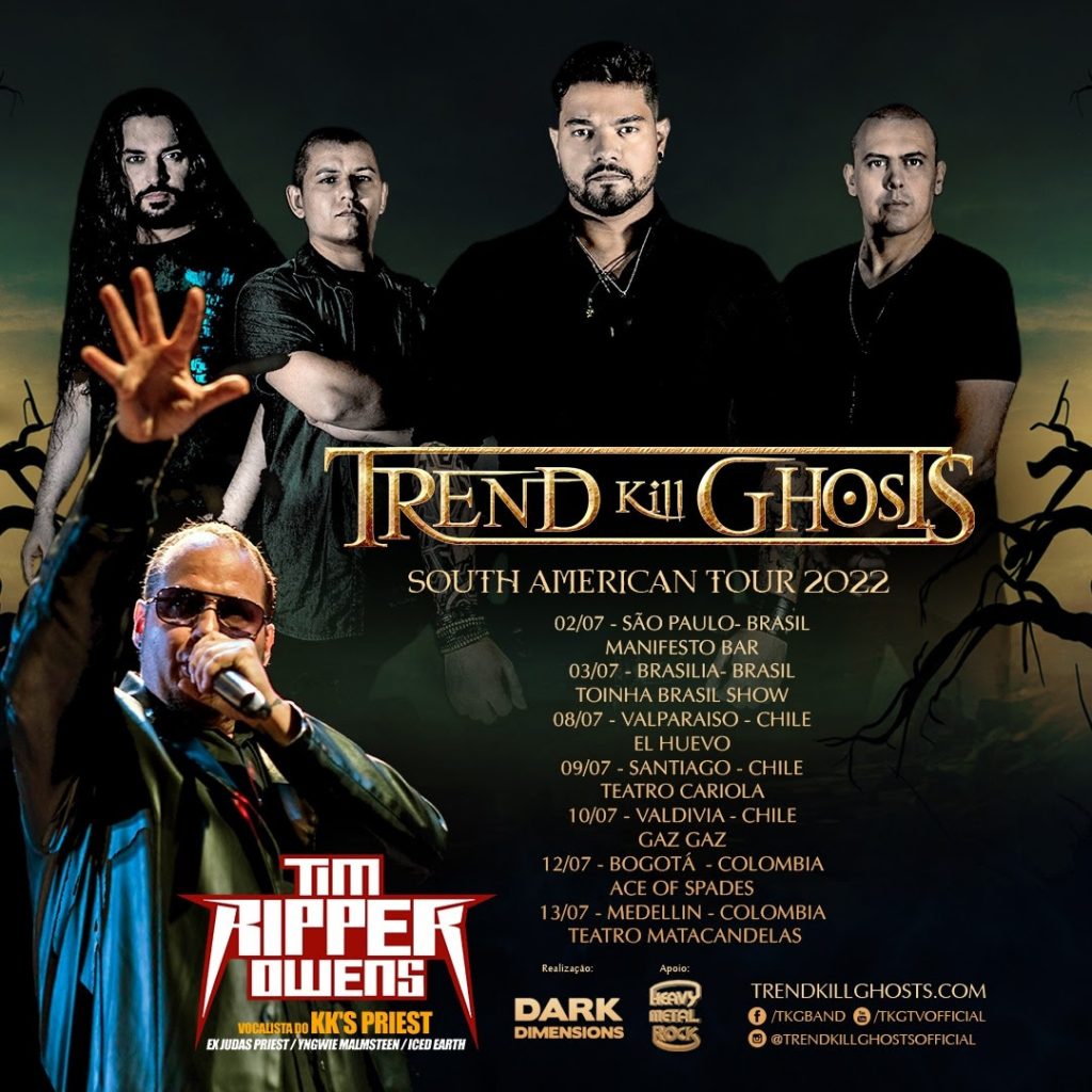 Formada en el año 2018, la banda de Power Metal & Metal Melódico TREND KILL GHOSTS, inspiradora en llevar un mensaje a través de la música para ayudar a matar fantasmas y perseguir objetivos muy influenciada por grandes como GAMMA RAY, HELLOWEEN o AVANTASIA, anuncia que será el grupo telonero de los espectáculos latinoamericanos que la leyenda del Metal Tim «Ripper» Owens llevará a cabo en Chile, Colombia y Brasil.