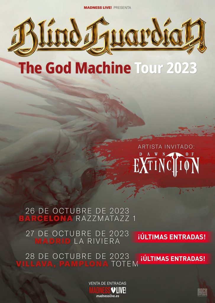 - Jueves 26 de octubre 2023 Sala Razzmatazz 1 (Barcelona) con anticipada de 45 € a través del siguiente enlace Comprar entradas para Blind Guardian + Dawn of Extinction (Barcelona) (madnesslive.es) y 55 € en taquilla.
