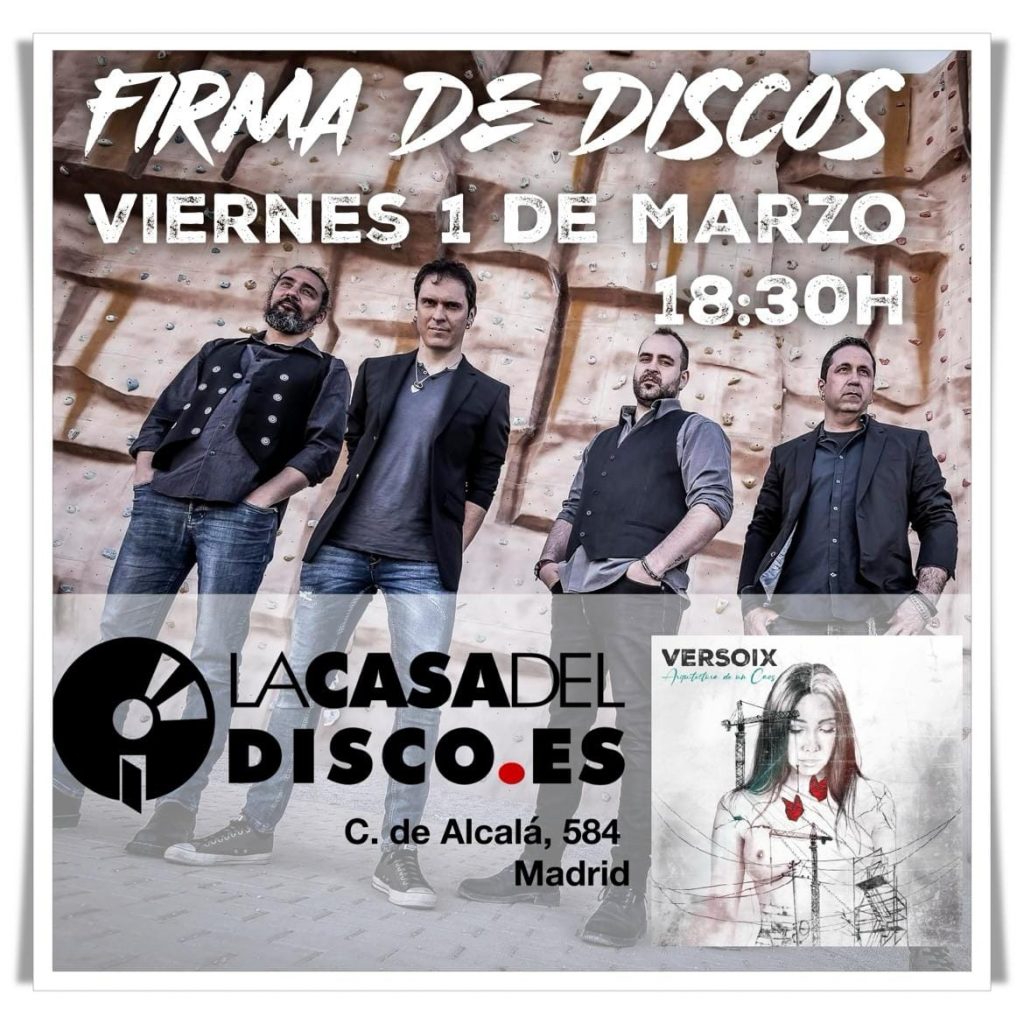 Los madrileños VERSOIX estarán este próximo viernes 1 de marzo a las 18;30 h, firmando su cuarto trabajo “La arquitectura de un caos” en La Casa del disco.es situada en la calle Alcalá 584 de Madrid.