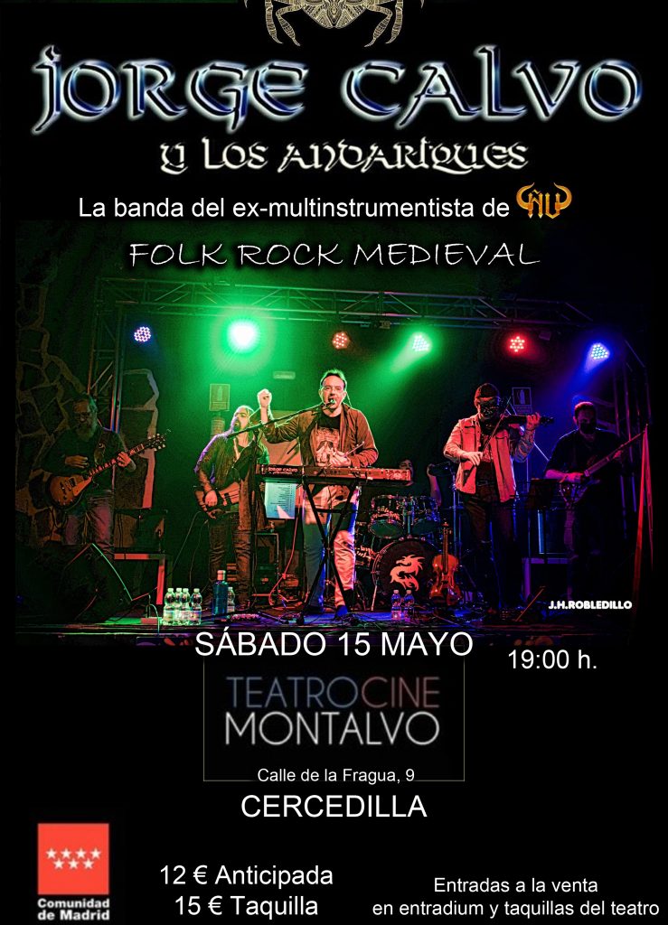 JORGE CALVO Y LOS ANDAQUIRES, la banda del que durante diez años fue multinstrumentista del mítico grupo ÑU (1997-2007) y que ya cuenta con cuatro discos en su carrera, presenta su espectáculo de Folk Rock Medieval en el Teatro Montalvo de Cercedilla el sábado 15 de mayo.