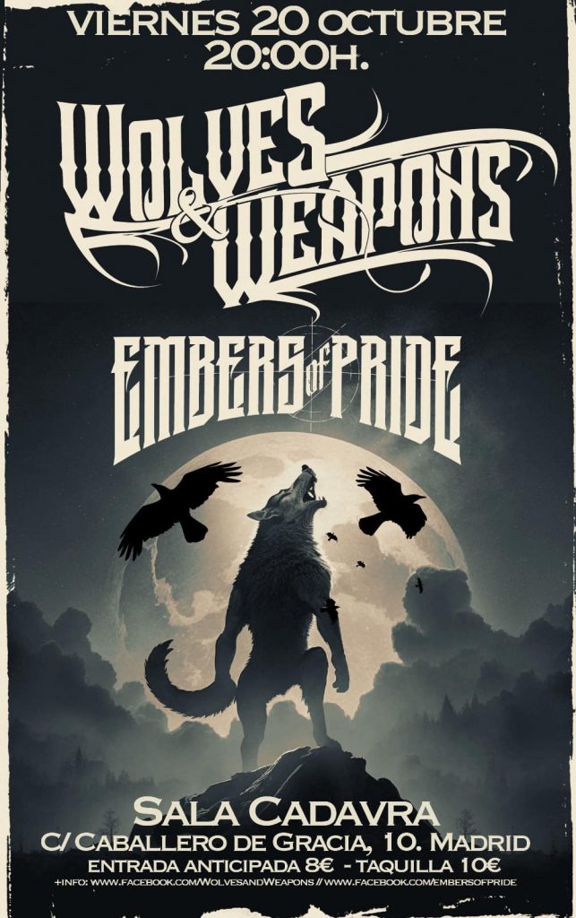 WOLVES WEAPONS y EMBERS OF PRIDE actuaran este próximo viernes 20 de octubre en la madrileña Sala CADAVRA de Madrid calle Caballero de Gracia 10. Apertura de puertas 20:30