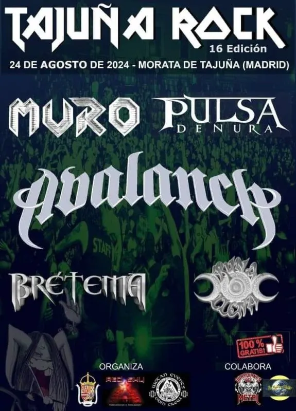 TAJUÑA ROCK desvela los 2 últimos grupos que configurarán el cartel de la 16 edición. RUNA LLENA y BRÉTEMA junto a MURO, PULSA DENURA y AVALANCH redondean uno de los Festivales más potentes de este verano.